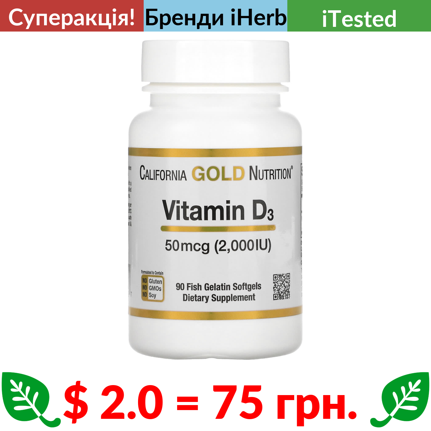 $ 2.0 = 75 Π³ΡΠ½. π₯ cΡΠΏΠ΅ΡΠ°ΠΊΡΡΡ! π₯ California Gold Nutrition, Π²ΡΡΠ°ΠΌΡΠ½ D3, 50 ΠΌΠ³ (2000 ΠΠ), 90 ΠΊΠ°ΠΏΡΡΠ» ΡΠ· ΡΠΈΠ±’ΡΡΠΎΠ³ΠΎ ΠΆΠ΅Π»Π°ΡΠΈΠ½Ρ