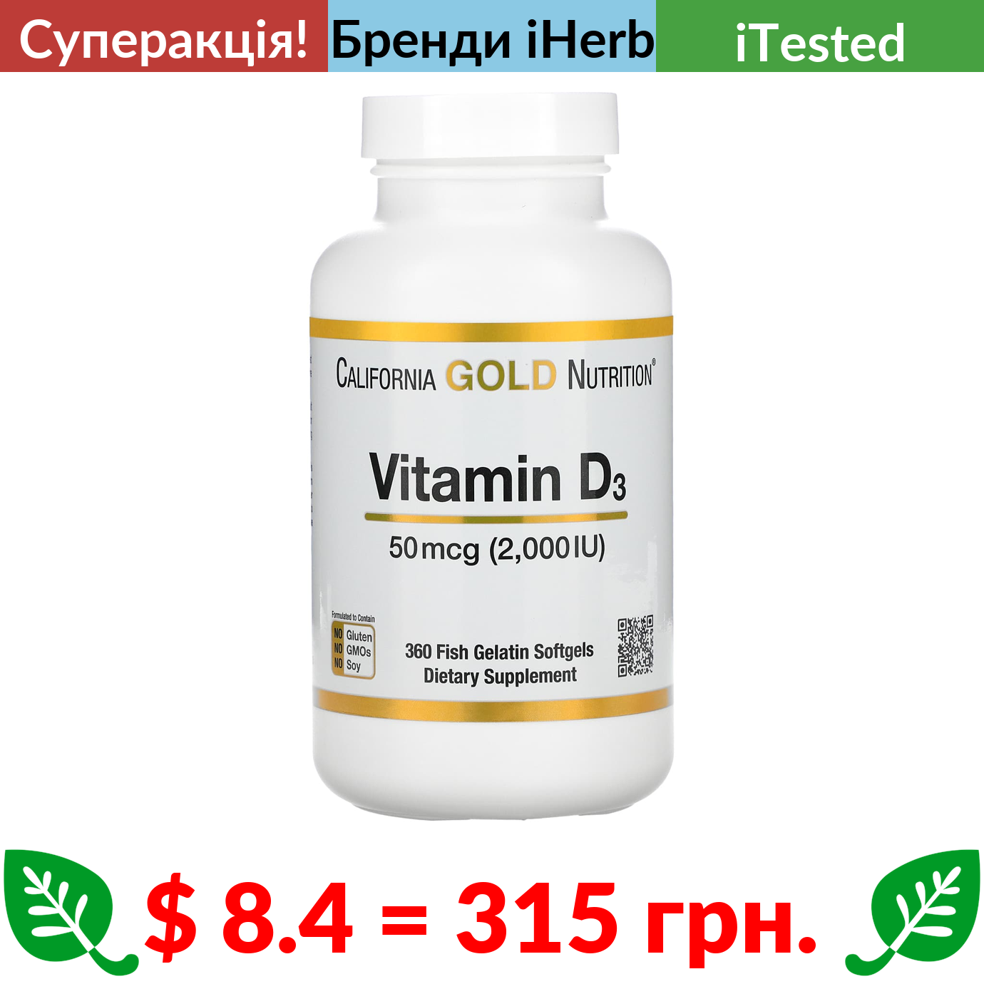 $ 8.4 = 315 Π³ΡΠ½. π₯ cΡΠΏΠ΅ΡΠ°ΠΊΡΡΡ! π₯ California Gold Nutrition, Π²ΡΡΠ°ΠΌΡΠ½ D3, 50 ΠΌΠΊΠ³ (2000 ΠΠ), 360 ΠΊΠ°ΠΏΡΡΠ» ΡΠ· ΡΠΈΠ±’ΡΡΠΎΠ³ΠΎ ΠΆΠ΅Π»Π°ΡΠΈΠ½Ρ