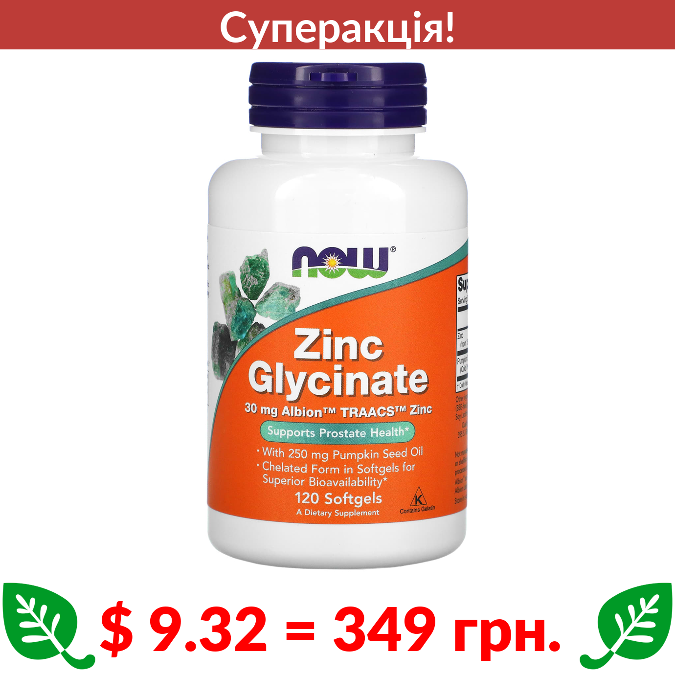 $ 9.32 = 349 Π³ΡΠ½. π₯ cΡΠΏΠ΅ΡΠ°ΠΊΡΡΡ! π₯ Now Foods, Π³Π»ΡΡΠΈΠ½Π°Ρ ΡΠΈΠ½ΠΊΡ, 120 ΠΊΠ°ΠΏΡΡΠ»