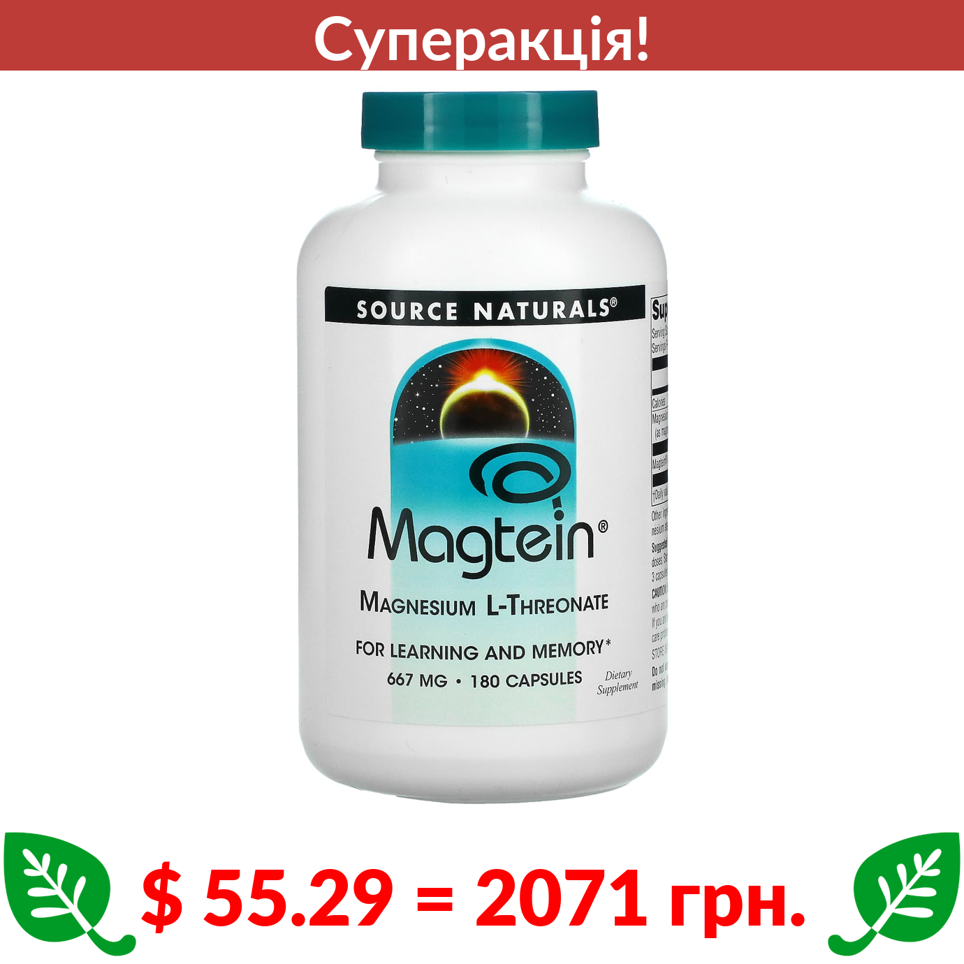 $ 55.29 = 2071 Π³ΡΠ½. π₯ cΡΠΏΠ΅ΡΠ°ΠΊΡΡΡ! π₯ Source Naturals, Magtein, ΠΌΠ°Π³Π½ΡΠΈ̆ L-ΡΡΠ΅ΠΎΠ½Π°Ρ, 667 ΠΌΠ³, 180 ΠΊΠ°ΠΏΡΡΠ»
