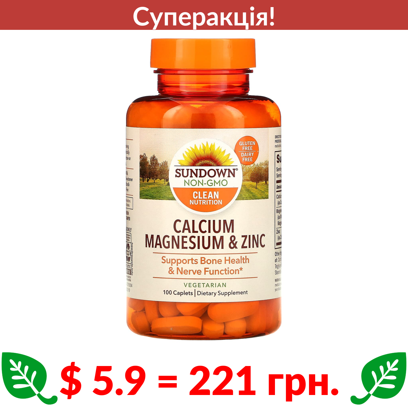 $ 5.9 = 221 Π³ΡΠ½. π₯ cΡΠΏΠ΅ΡΠ°ΠΊΡΡΡ! π₯ Sundown Naturals, ΠΊΠ°Π»ΡΡΡΠΈ̆, ΠΌΠ°Π³Π½ΡΠΈ̆ Ρ ΡΠΈΠ½ΠΊ, 100 ΠΊΠ°ΠΏΡΡΠ»