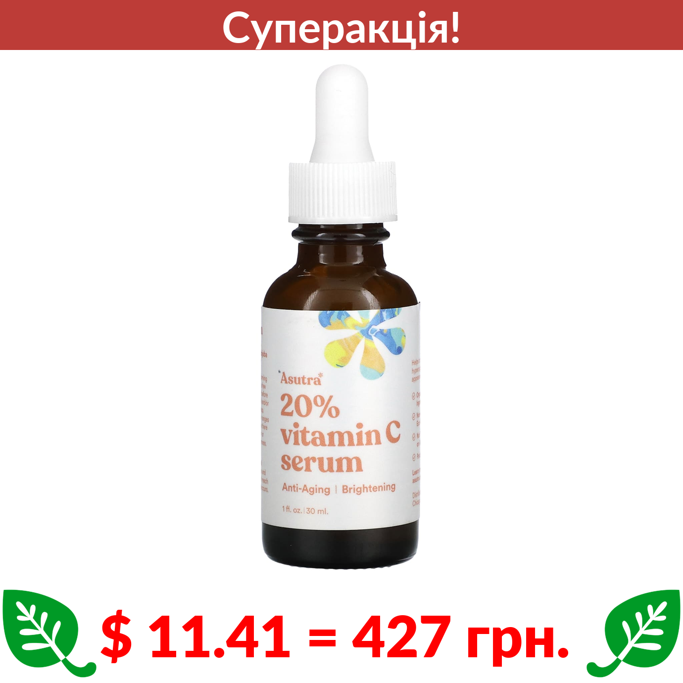 $ 11.41 = 427 Π³ΡΠ½. π₯ cΡΠΏΠ΅ΡΠ°ΠΊΡΡΡ! π₯ Asutra, Π‘ΠΈΡΠΎΠ²Π°ΡΠΊΠ° Π· 20% Π²ΡΡΠ°ΠΌΡΠ½Ρ Π‘, 1 ΡΡΠ΄ΠΊΠ° ΡΠ½ΡΡΡ (30 ΠΌΠ»)