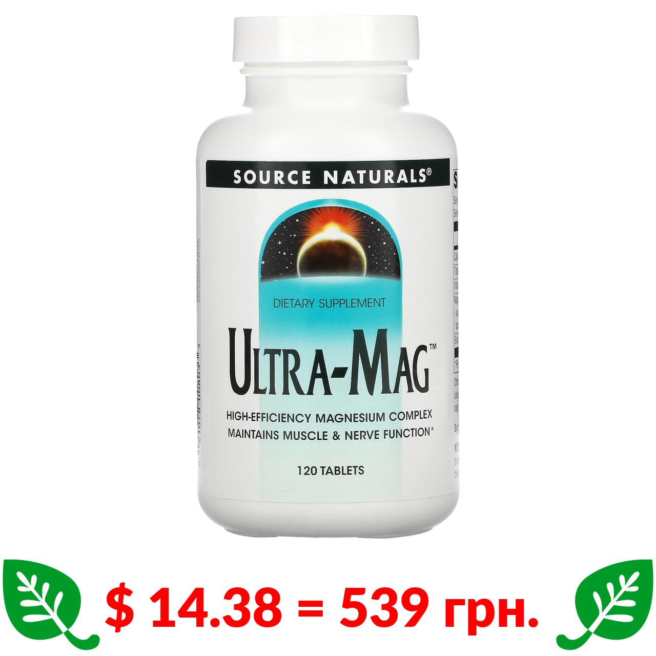 $ 14.38 = 539 Π³ΡΠ½. Source Naturals, Ultra-Mag, ΠΊΠΎΠΌΠΏΠ»Π΅ΠΊΡ ΡΠ· ΠΌΠ°Π³Π½ΡΡΠΌ, 120 ΡΠ°Π±Π»Π΅ΡΠΎΠΊ