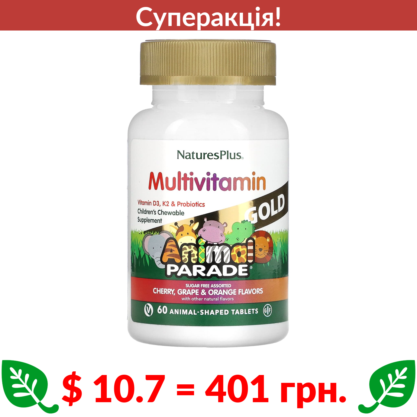 10.27 = 385 Π³ΡΠ½. Nature's Plus, Source of Life, Animal Parade, Kids