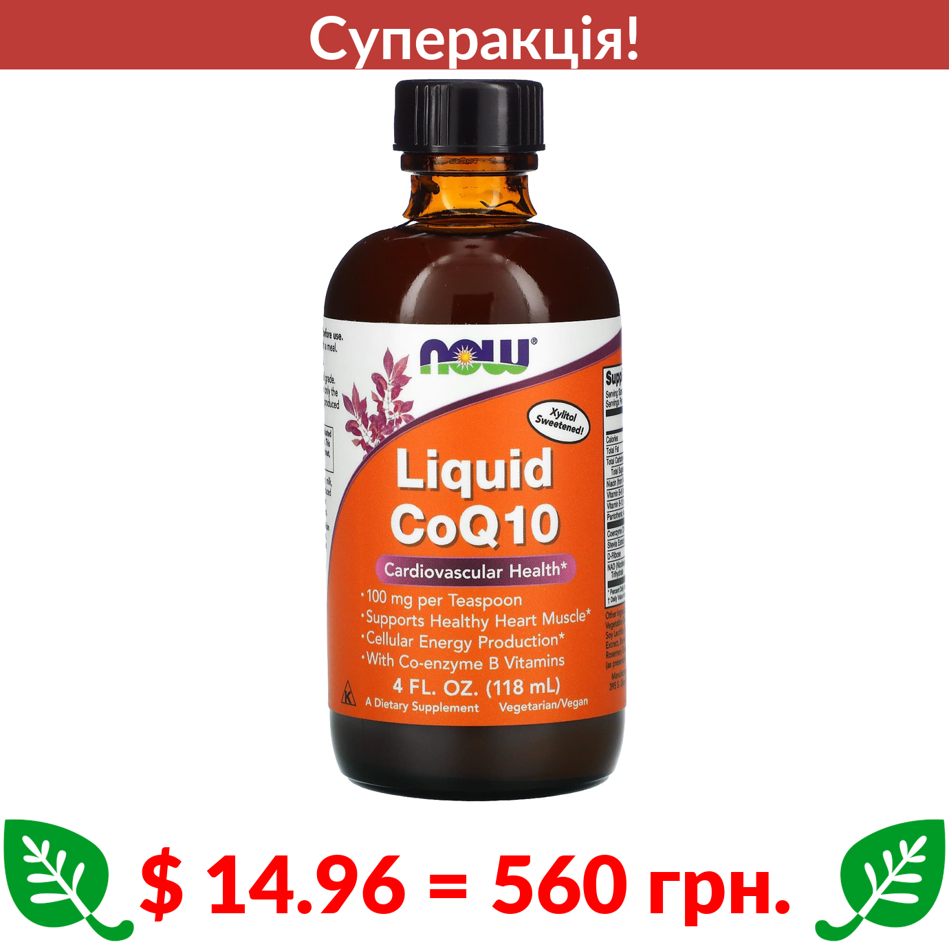 $ 14.96 = 560 Π³ΡΠ½. π₯ cΡΠΏΠ΅ΡΠ°ΠΊΡΡΡ! π₯ Now Foods, Liquid CoQ10, 100 mg , 4 fl oz (118 ml)