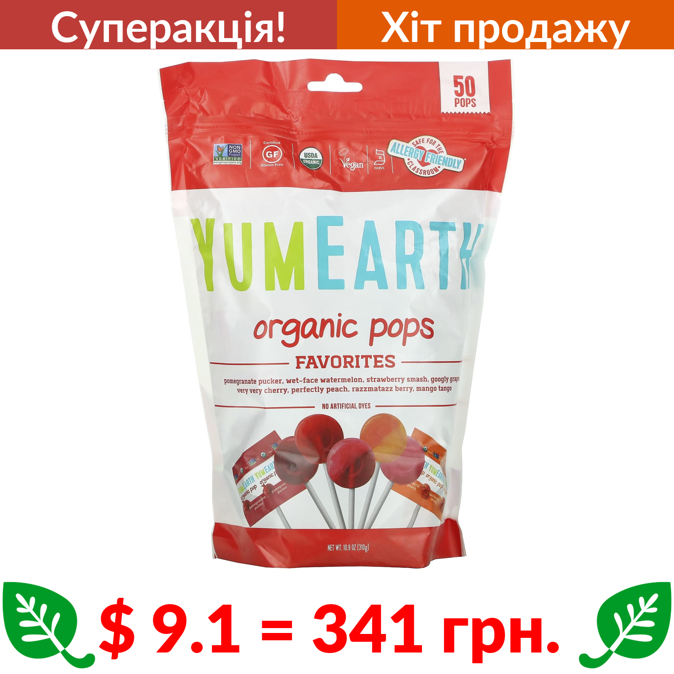 $ 9.1 = 341 Π³ΡΠ½. π₯ cΡΠΏΠ΅ΡΠ°ΠΊΡΡΡ! π₯ YumEarth, ΠΎΡΠ³Π°Π½ΡΡΠ½Ρ Π»ΡΠΎΠ΄ΡΠ½ΠΈΠΊΠΈ, Π°ΡΠΎΡΡΡ, 50 ΡΡ., 310 Π³ (10,9 ΡΠ½ΡΡΡ̈)