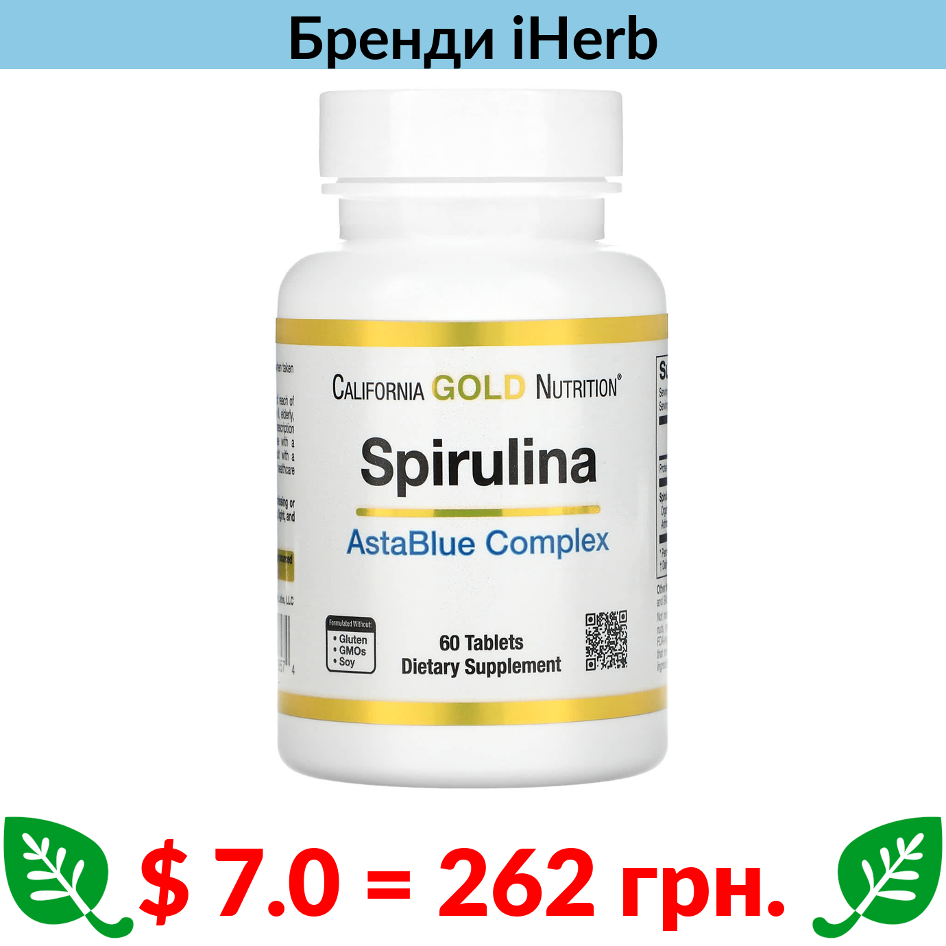 $ 7.0 = 262 Π³ΡΠ½. California Gold Nutrition, ΠΊΠΎΠΌΠΏΠ»Π΅ΠΊΡ AstaBlue Π·Ρ ΡΠΏΡΡΡΠ»ΡΠ½ΠΎΡ, 60 ΡΠ°Π±Π»Π΅ΡΠΎΠΊ