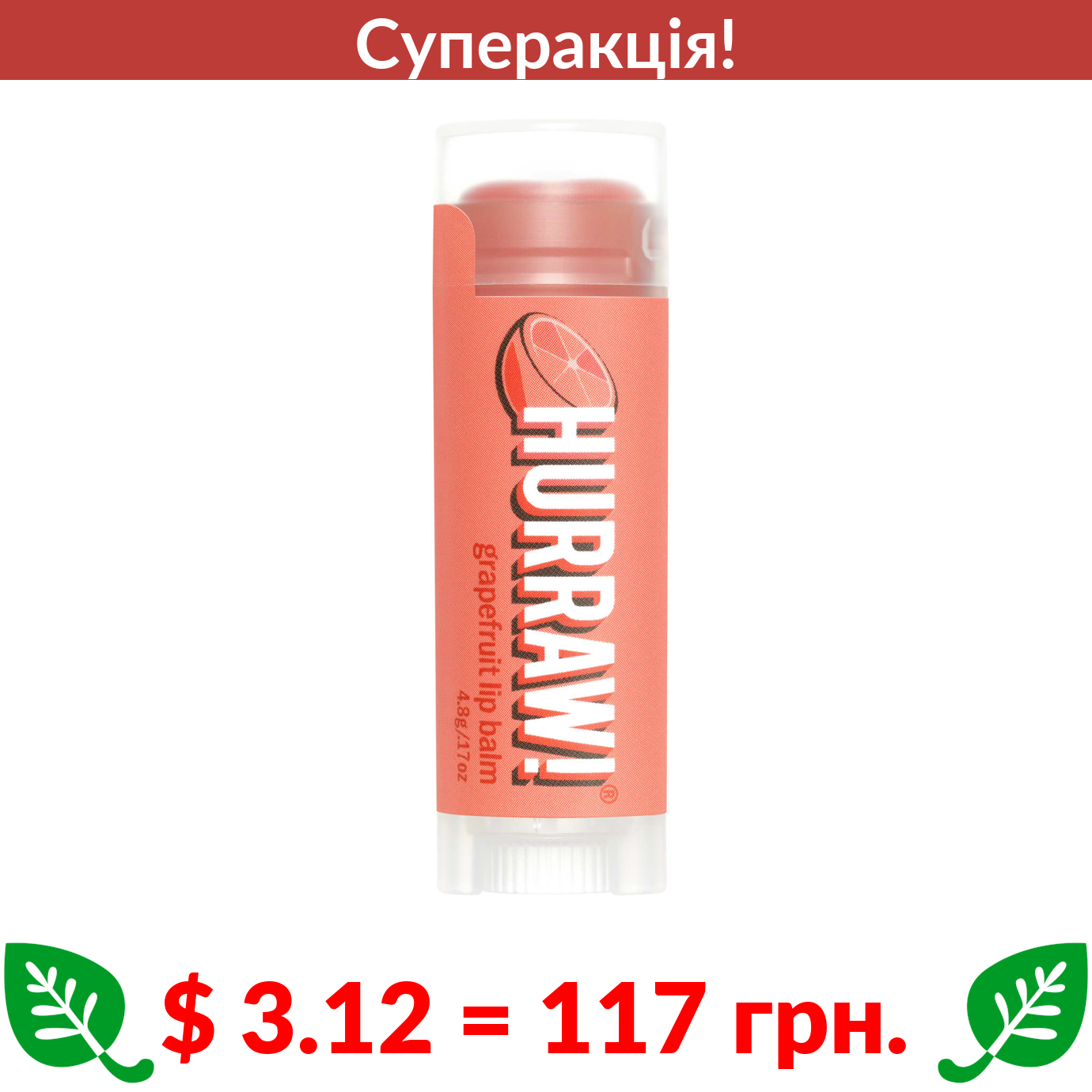 $ 3.12 = 117 Π³ΡΠ½. π₯ cΡΠΏΠ΅ΡΠ°ΠΊΡΡΡ! π₯ Hurraw!, Π±Π°Π»ΡΠ·Π°ΠΌ Π΄Π»Ρ Π³ΡΠ±, Π³ΡΠ΅ΠΈ̆ΠΏΡΡΡΡ, 4,8 Π³ (0,17 ΡΠ½ΡΡΡ̈)