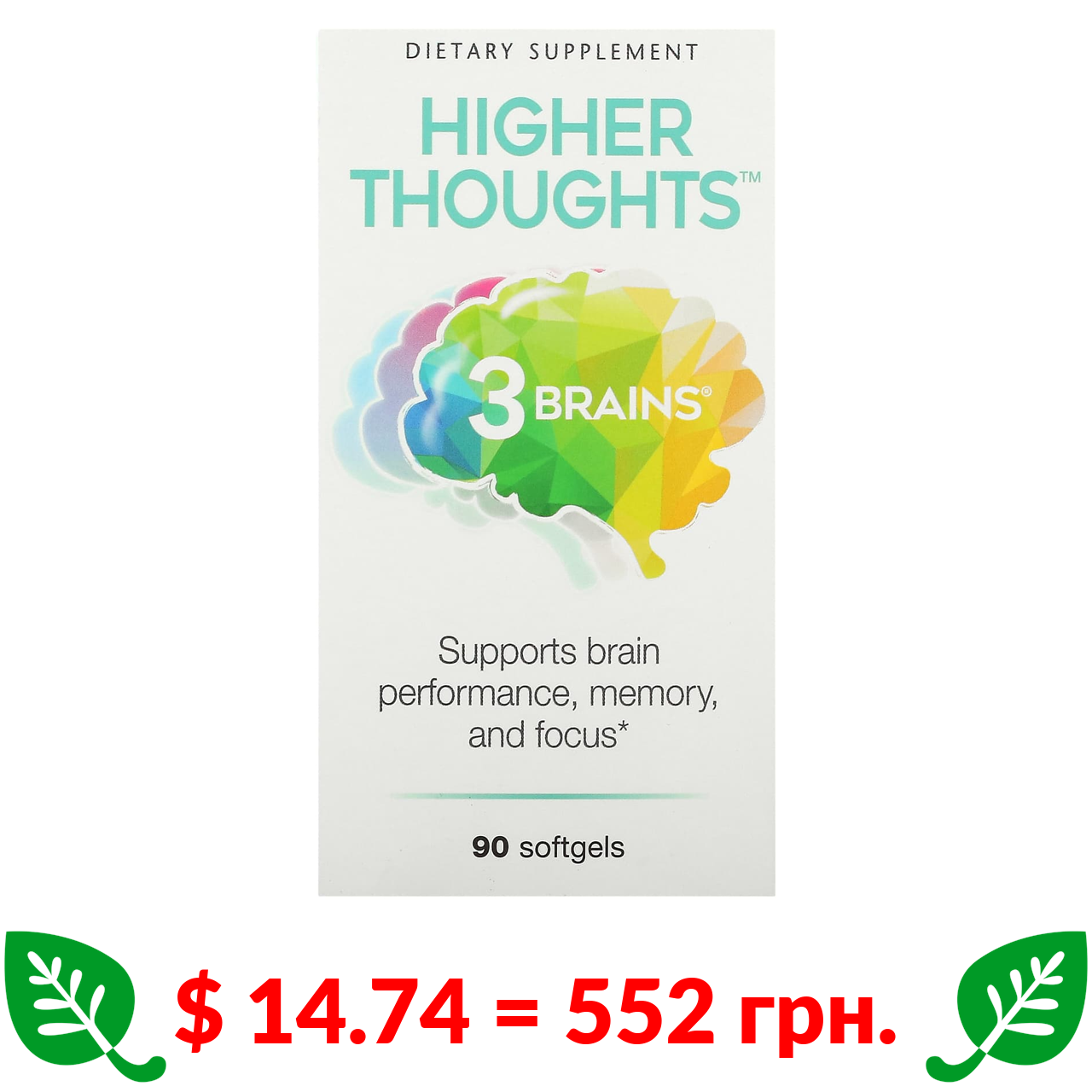 $ 14.74 = 552 Π³ΡΠ½. Natural Factors, 3 Brains, Higher Thoughts, 90 Softgels