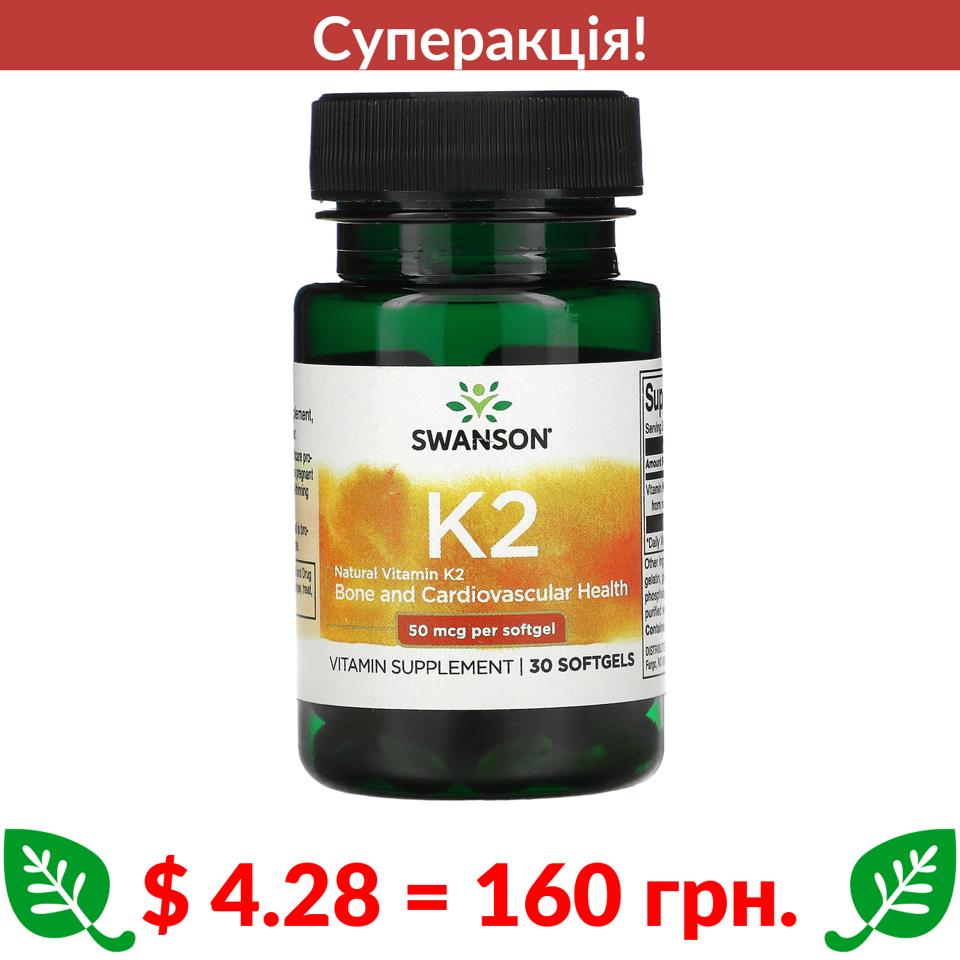$ 4.28 = 160 Π³ΡΠ½. π₯ cΡΠΏΠ΅ΡΠ°ΠΊΡΡΡ! π₯ Swanson, ΠΠ°ΡΡΡΠ°Π»ΡΠ½ΠΈΠΈ̆ Π²ΡΡΠ°ΠΌΡΠ½ K2, 50 ΠΌΠΊΠ³, 30 ΠΊΠ°ΠΏΡΡΠ»