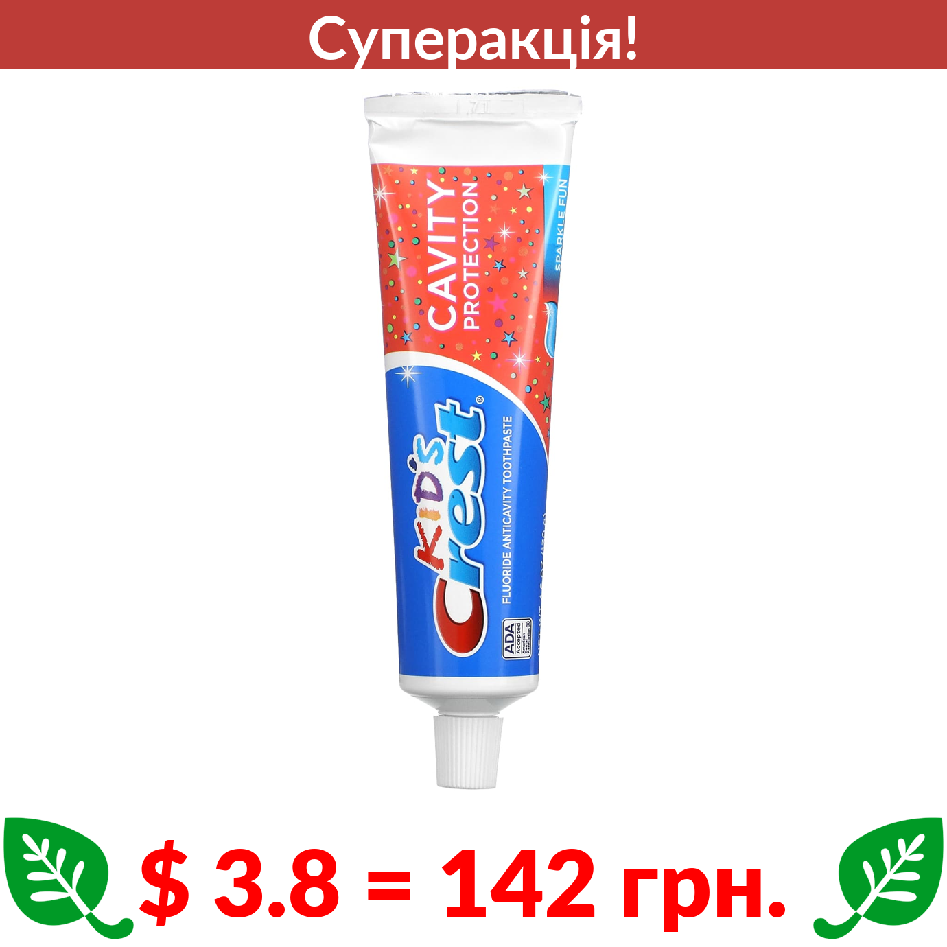 $ 3.8 = 142 Π³ΡΠ½. π₯ cΡΠΏΠ΅ΡΠ°ΠΊΡΡΡ! π₯ Crest, Kids, Sparkle Fun, Π΄ΠΈΡΡΡΠ° Π·ΡΠ±Π½Π° ΠΏΠ°ΡΡΠ° ΠΏΡΠΎΡΠΈ ΠΊΠ°ΡΡΡΡΡ Π· ΡΡΠΎΡΠΎΠΌ, 130 Π³ (4,6 ΡΠ½ΡΡΡ̈)