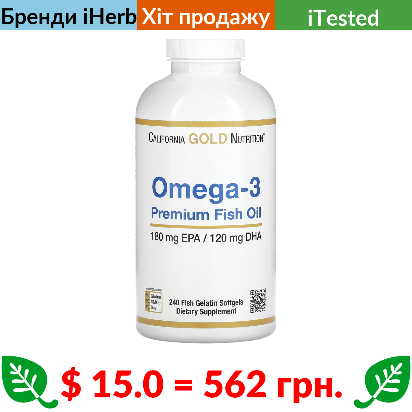 15.0 = 562 Π³ΡΠ½. California Gold Nutrition, ΠΎΠΌΠ΅Π³Π°-3, ΡΠΈΠ±’ΡΡΠΈΠΈ̆ ΠΆΠΈΡ