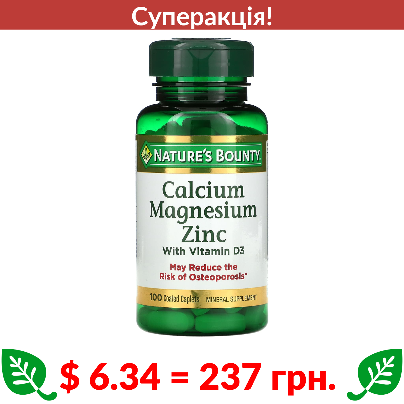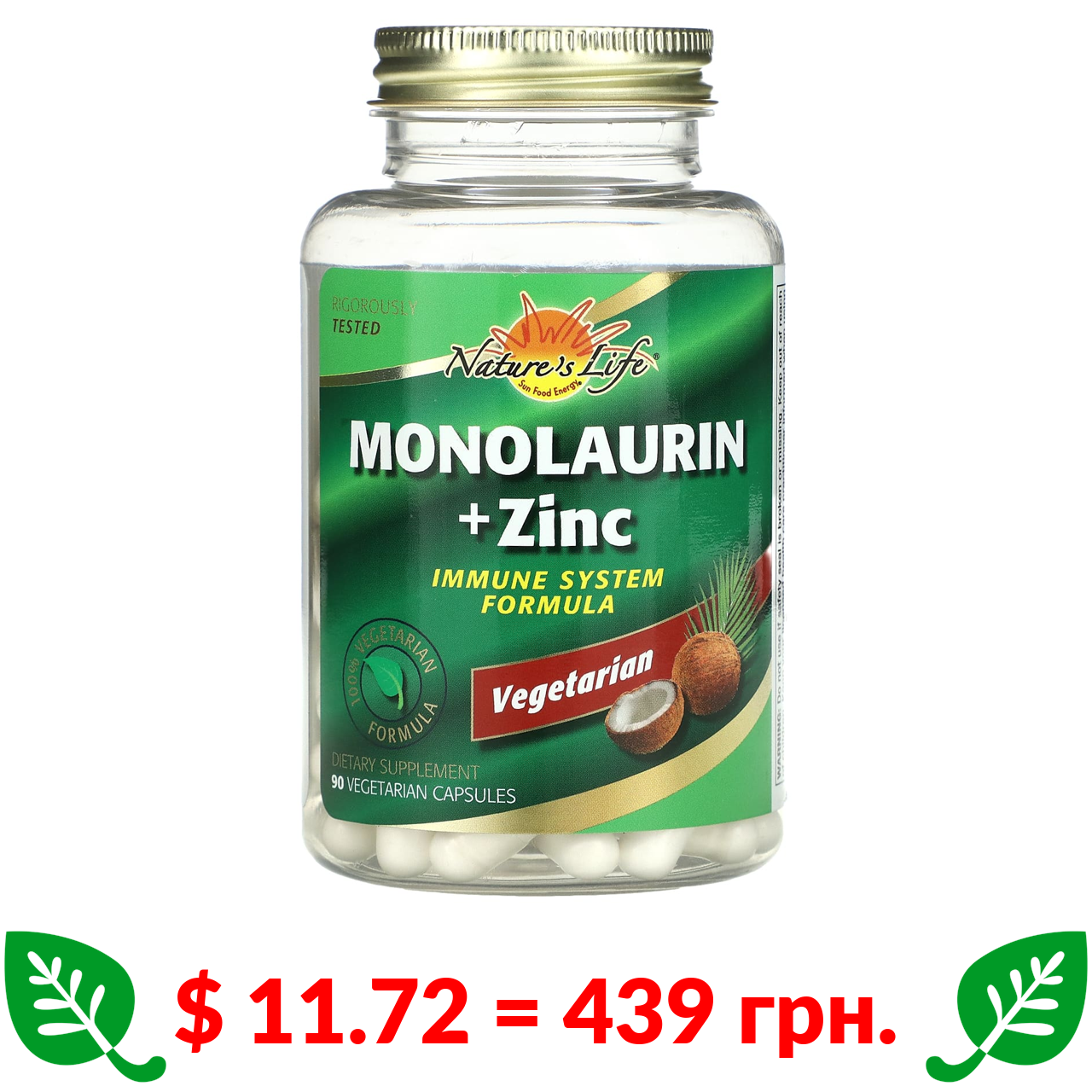 $ 11.72 = 439 Π³ΡΠ½. Nature's Life, ΠΌΠΎΠ½ΠΎΠ»Π°ΡΡΠΈΠ½ Ρ ΡΠΈΠ½ΠΊ, 90 Π²Π΅Π³Π΅ΡΠ°ΡΡΠ°Π½ΡΡΠΊΠΈΡ