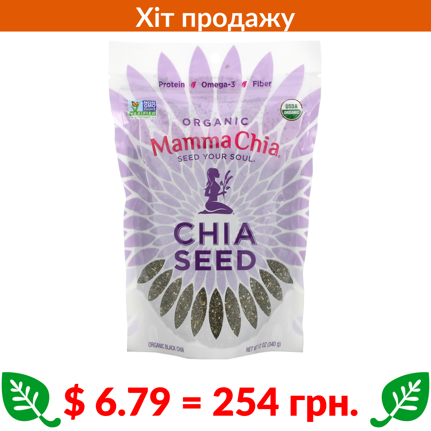 $ 6.79 = 254 Π³ΡΠ½. π️ Ρ ΠΊΠΎΡΠΈΠΊΡ π️ Mamma Chia, ΠΎΡΠ³Π°Π½ΡΡΠ½Π΅ Π½Π°ΡΡΠ½Π½Ρ ΡΡΠ°, 340 Π³ (12 ΡΠ½ΡΡΠΈ̆)
