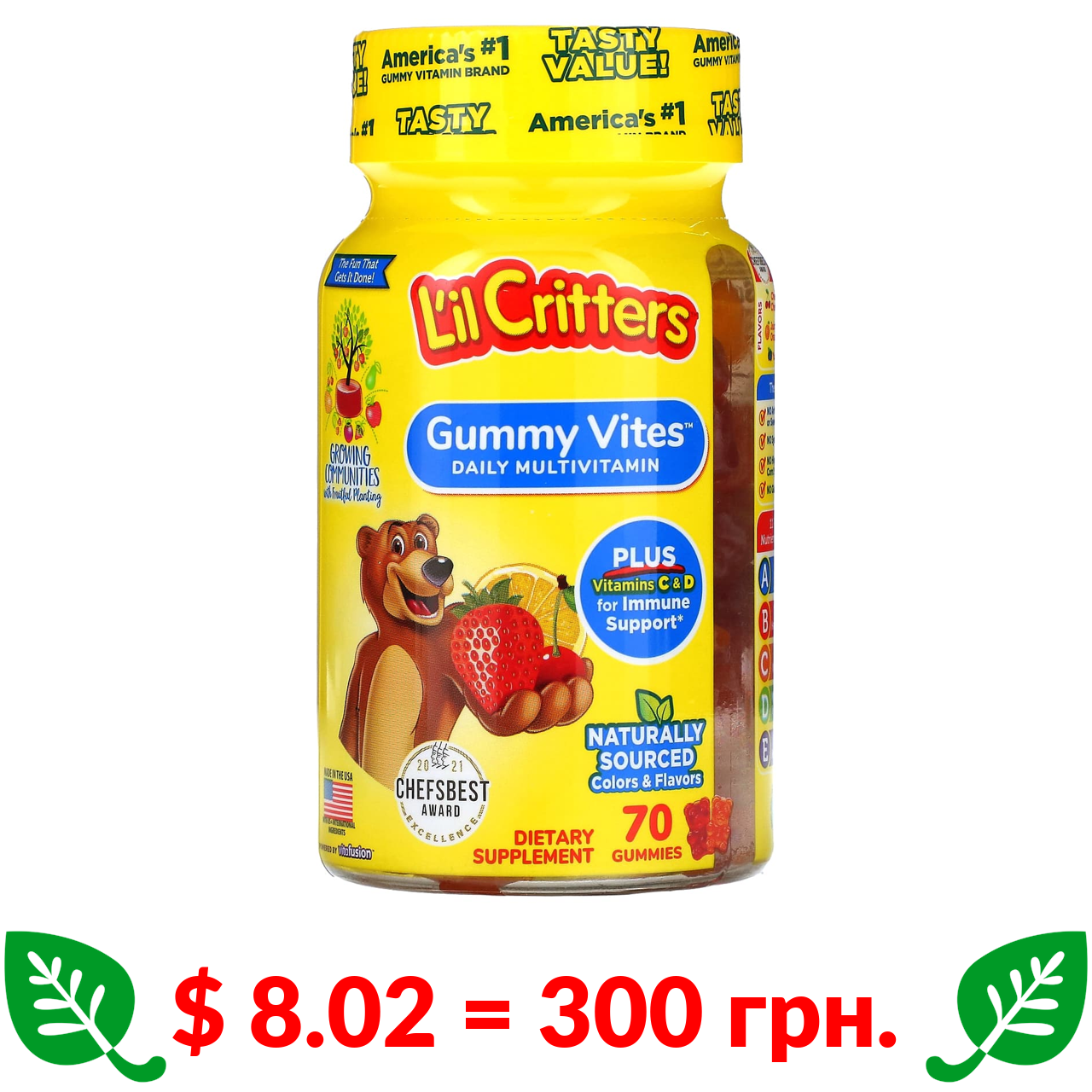 $ 8.02 = 300 Π³ΡΠ½. L'il Critters, Gummy Vites, ΠΊΠΎΠΌΠΏΠ»Π΅ΠΊΡ ΠΆΡΠ²Π°Π»ΡΠ½ΠΈΡ
