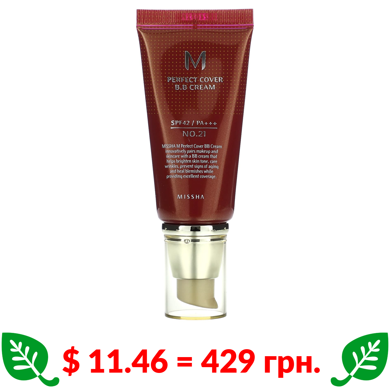 $ 11.46 = 429 Π³ΡΠ½. Missha, M Perfect Cover, BB-ΠΊΡΠ΅ΠΌ, SPF 42 PA+++, Π²ΡΠ΄ΡΡΠ½ΠΎΠΊ No 21 ΡΠ²ΡΡΠ»ΠΎ-Π±Π΅ΠΆΠ΅Π²ΠΈΠΈ̆, 50 ΠΌΠ» (1,7 ΡΠ½ΡΡΡ̈)