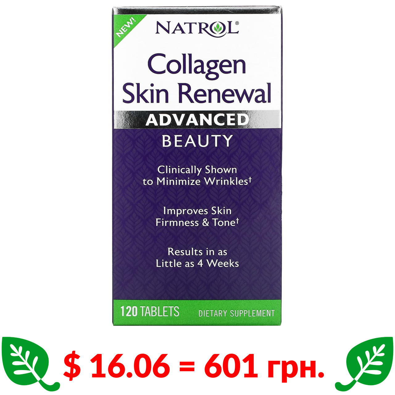 $ 16.06 = 601 Π³ΡΠ½. Natrol, ΠΊΠΎΠ»Π°Π³Π΅Π½ Π΄Π»Ρ Π²ΡΠ΄Π½ΠΎΠ²Π»Π΅Π½Π½Ρ ΡΠΊΡΡΠΈ, 120 ΡΠ°Π±Π»Π΅ΡΠΎΠΊ