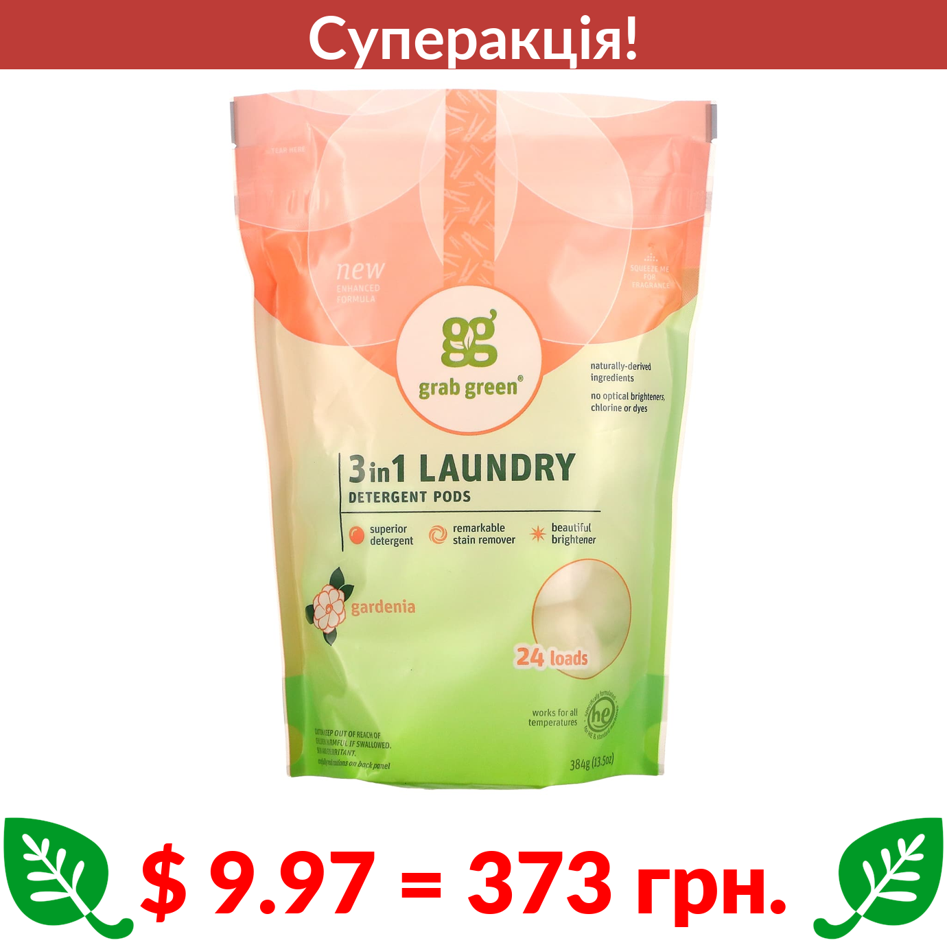 $ 9.97 = 373 Π³ΡΠ½. π₯ cΡΠΏΠ΅ΡΠ°ΠΊΡΡΡ! π₯ Grab Green, ΠΊΠ°ΠΏΡΡΠ»ΠΈ Π· ΠΏΡΠ°Π»ΡΠ½ΠΈΠΌ ΠΏΠΎΡΠΎΡΠΊΠΎΠΌ 3-Π²-1, Π³Π°ΡΠ΄Π΅Π½ΡΡ, 24 ΠΏΡΠ°Π½Π½Ρ, 384 Π³ (13,5 ΡΠ½ΡΡΡ̈)