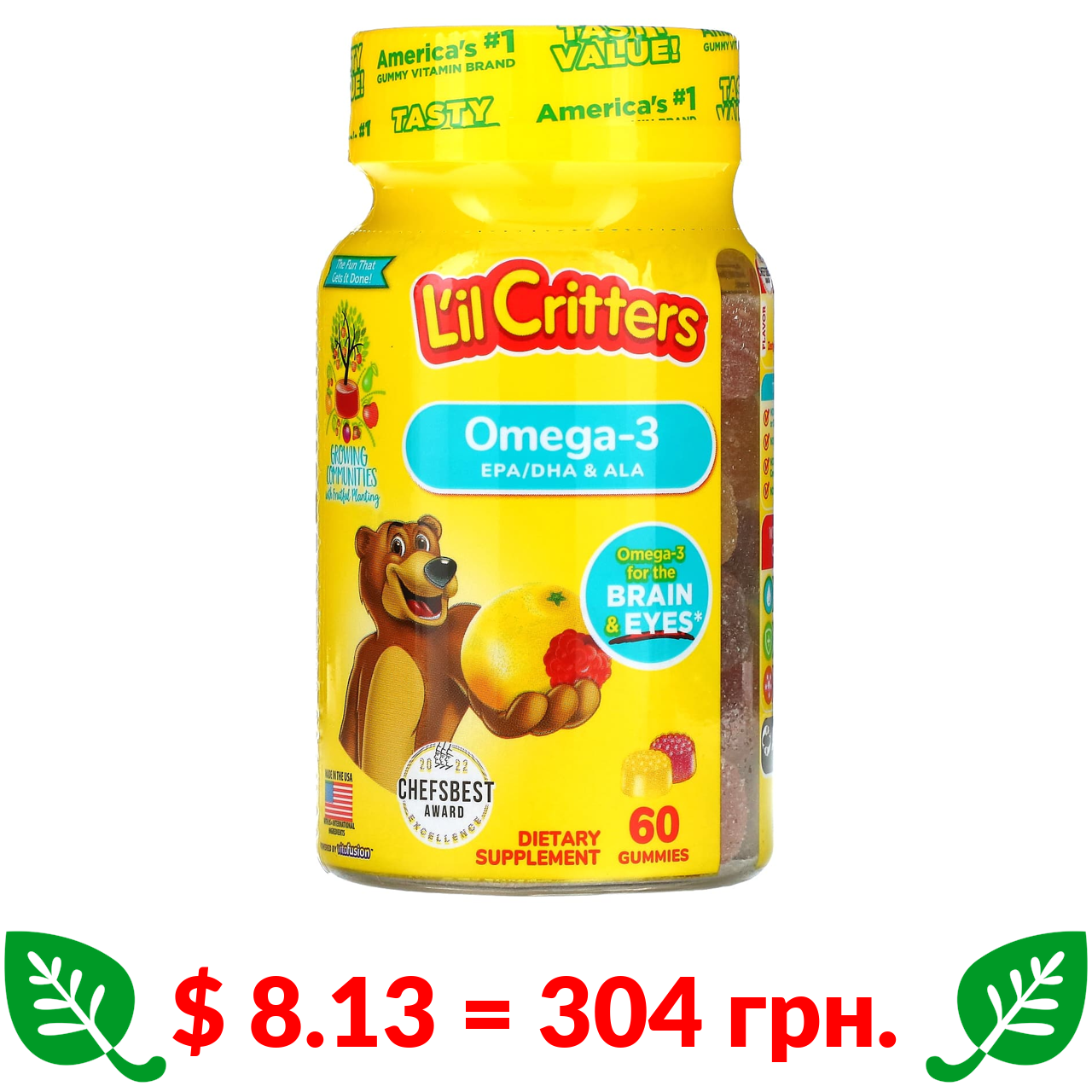 $ 8.13 = 304 Π³ΡΠ½. L'il Critters, ΠΎΠΌΠ΅Π³Π°-3, Π·Ρ ΡΠΌΠ°ΠΊΠΎΠΌ ΠΌΠ°Π»ΠΈΠ½ΠΈ ΡΠ° Π»ΠΈΠΌΠΎΠ½Π°Π΄Ρ, 60 ΠΆΡΠ²Π°Π»ΡΠ½ΠΈΡ